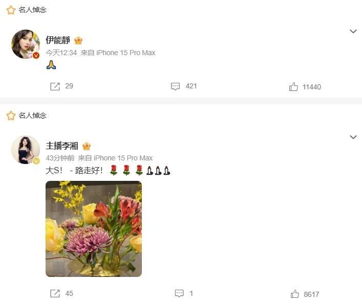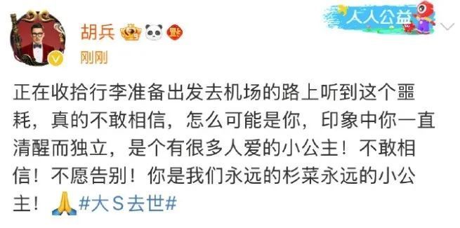 众多明星好友在收到大S离世消息后发文悼念,贾静雯称“难以相信”;朱孝天直言“晴天霹雳”;好友阿雅感慨,“你的离开是我刻在心里的哀伤,我会记住你的美好”。
